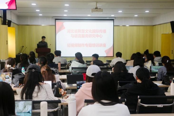本网讯(通讯员张苏雨)4月7日下午14:00,我院在黄家湖校区教四楼42305会议室举办荆楚文化国际传播短视频制作培训讲座。我校宣传部融媒体中心视频部主编毕浩洋老师来我院进行讲座宣讲及培训。我院院长李金云,乔琼、李旎等教师代表以及2025级专硕全体同学参加此次培训。