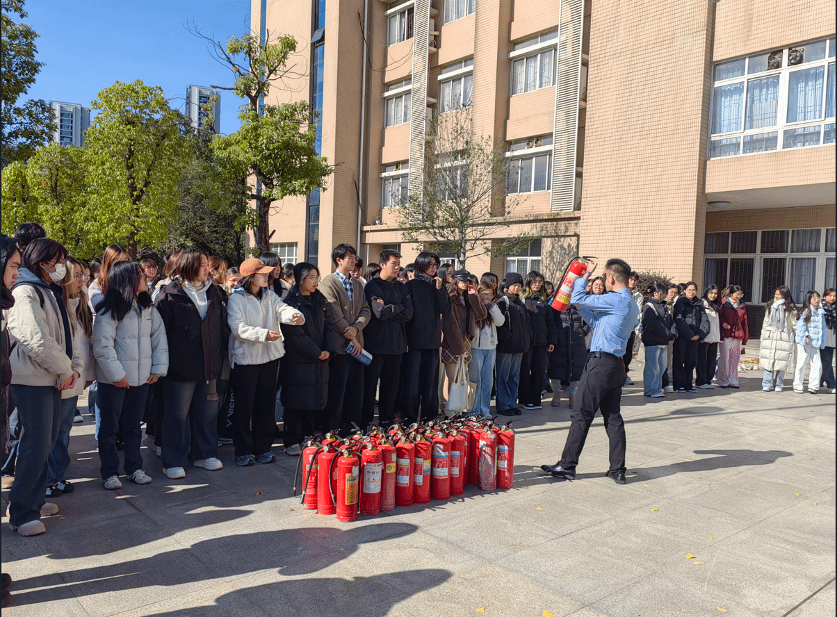 本网讯  为进一步增强全院师生的消防安全意识,提升应对突发火情的自救互救能力,11月18日,我院精心组织了一场涵盖消防安全讲座、技能培训与应急疏散演练的系列安全教育活动。本次活动以“全民消防、生命至上—安全用火用电”为主题,旨在将理论知识与实践操作紧密结合,全面夯实校园安全基础。活动特邀武汉顺防安消防服务中心高级教员陈意担任主讲,学院师生共同参与,学校保卫处全程提供支持与配合。