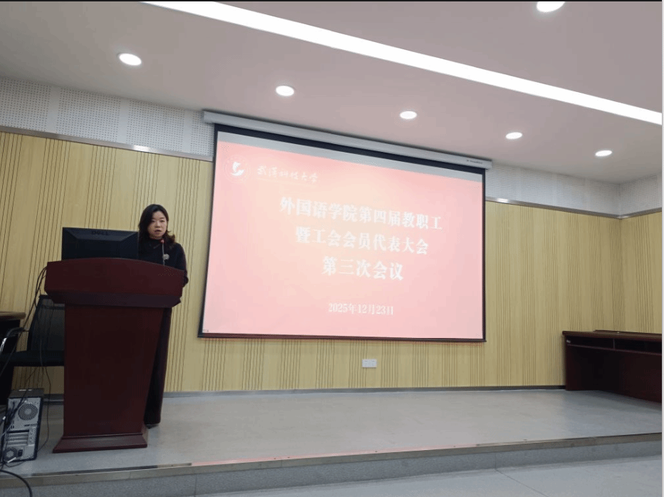 最后,学院党委书记郑娟致闭幕词。她代表学院党委对大会的圆满成功表示祝贺,对全体代表的辛勤付出表示感谢。郑娟书记强调,本次大会是一次民主团结、求真务实、凝心聚力、共谋发展的大会。她要求,全院上下要认真学习宣传贯彻大会精神,紧紧围绕学院“十五五”规划发展目标,以翻译博士专业学位授权点突破为牵引,以冶金科技翻译、荆楚文化国际传播、国际中文教育等为学科增长点,进一步深化教育教学改革,提升科研创新能力,优化人才培养模式,以高质量党建引领学院高质量内涵式发展。她呼吁全体教职工,永葆主人翁本色,以双语融通的视野、立德树人的担当,为绘就学院事业蓬勃发展的宏伟蓝图贡献力量。