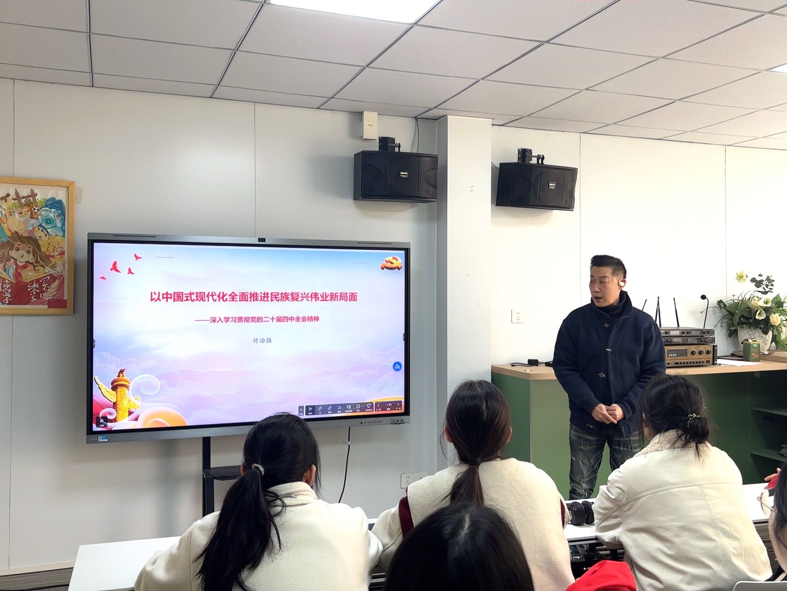 付治强以“以中国式现代化全面推进中华民族伟大复兴”为主题,对党的二十届四中全会精神进行了系统阐述。他围绕全会提出的新思想、新论断、新要求,结合当前国际国内发展形势与外语学科特点,深入解读了中国式现代化的深刻内涵、本质要求与实践路径。